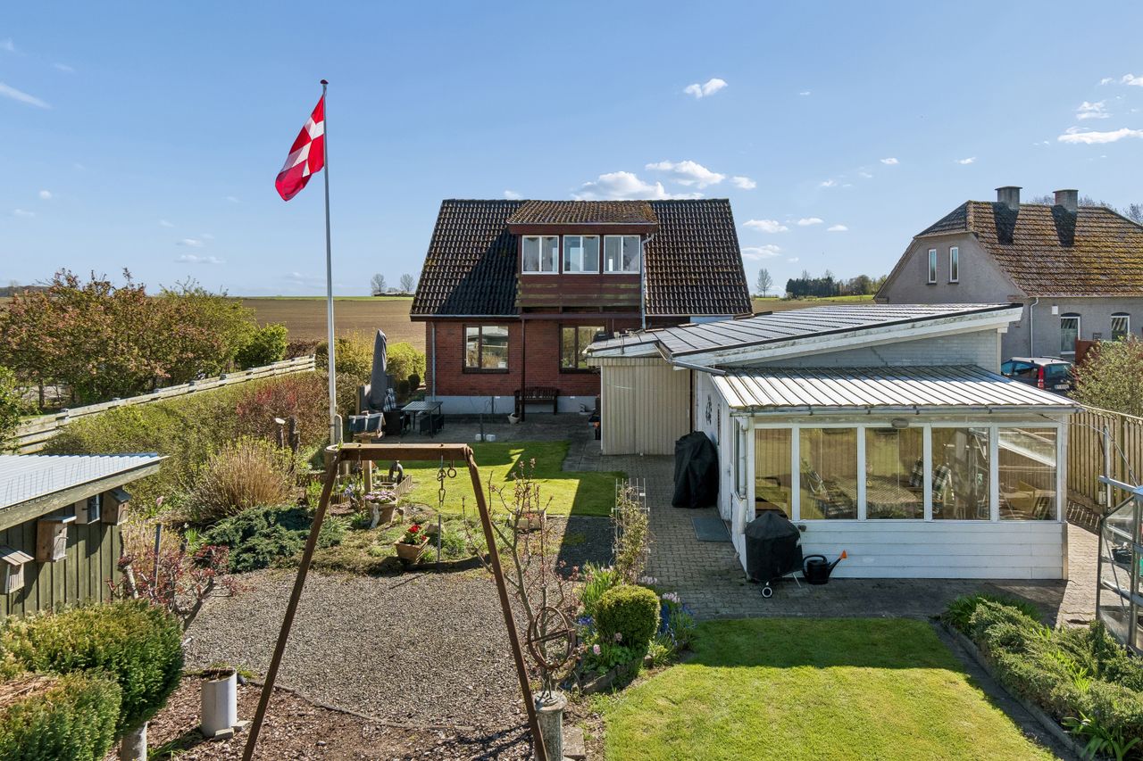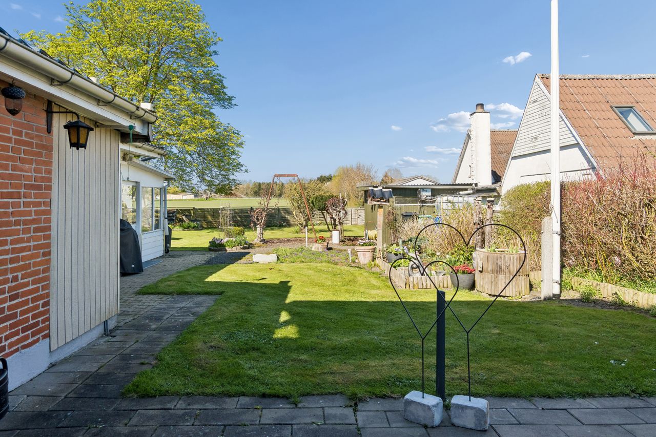 Velpasset have hvor der er udsigt over marker både fra forhave fra baghaven.